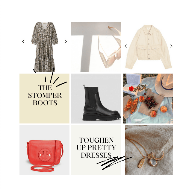When getting out for the daily walk they can be worn casually to toughen up a simple jumper and jeans but what I love is how they also add edginess to a soft, fluid dress. They’ll be a purchase that can be worn over and over. We might not be stomping down the high street just yet, but go online and you’ll find these styles at Cos, Ganni, Mango and ASOS.
